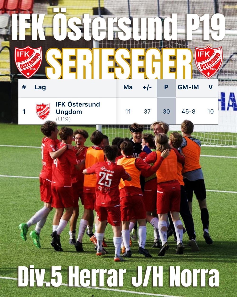 Vi gratulerar vårt fantastiska P19-lag som säkrat segern i Div. 5 Herrar J/H Norra 2025! Otroligt roligt att våra unga spelare tar denna serieseger!