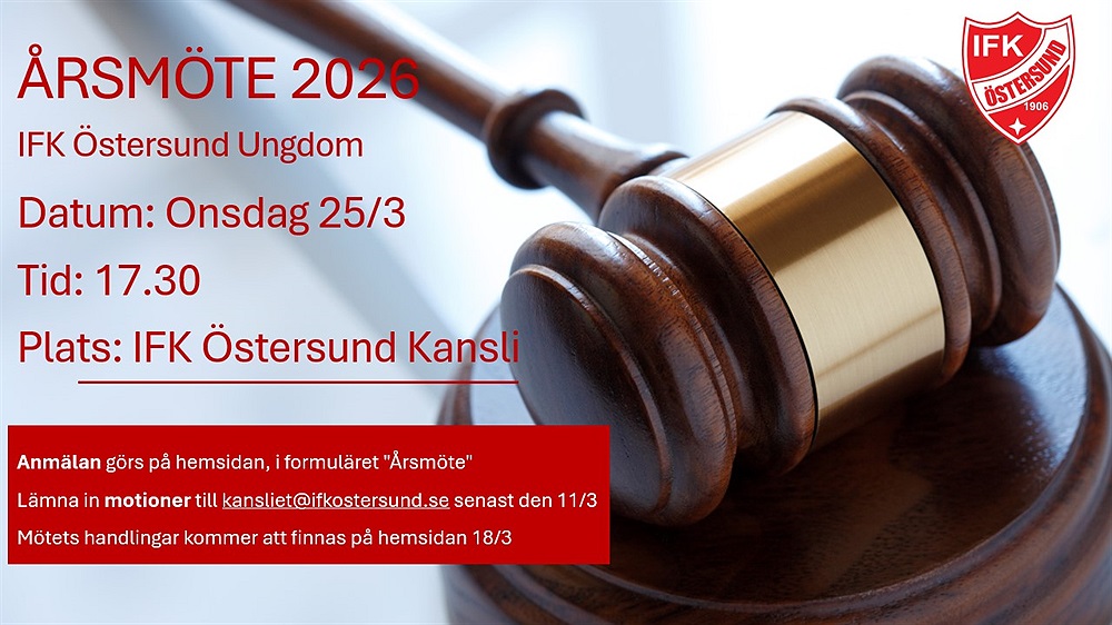 Även välkommen till IFK Östersund Ungdoms årsmöte 25/3 på kansliet, 17.30.